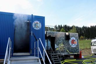 Die Brandsimulationsanlage des Landes Hessen besteht aus zwei Containern für unterschiedliche Szenarien. Die Räume können mit Rauch gefüllt, aufgeheizt und in Brand gesetzt werden. (Foto: Lahn-Dill-Kreis)