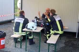 Jedes Team hatte 20 bis 30 Minuten Zeit für die Übung. Im Anschluss bekamen die Einsatzkräfte Feedback von ihrem Ausbilder. Dabei wurde beispielsweise besprochen, wie gut sich die beiden Feuerwehrleute ergänzt und Aufgaben untereinander aufgeteilt haben oder wie effizient das Such- und Löschverhalten war.