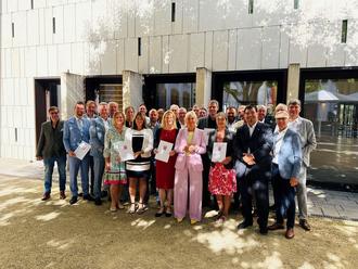 Digitalministerin Prof. Dr. Kristina Sinemus überreichte sieben Förderbescheide für ein Starkregenfrühalarmsystem an die Vertreterinnen und Vertreter der projektverantwortlichen Kommunen und Landkreise. (Foto: Hessisches Ministerium für Digitalisierung und Innovation)