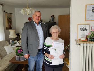 Bürgermeister Christian überbrachte dem „Geburtstagskind“ Herta Funck persönlich die besten Glückwünsche zu ihrem 104. Geburtstag. (Foto: Stadt Braunfels)