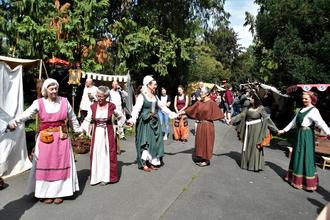 Das diesjährige Spektakulum im Braunfelser Kurpark konnte unter besten Wetterverhältnissen stattfinden. Mit dabei waren auch diesmal einige Tänzer und Tänzerinnen des Volkstanzkreises in entsprechender mittelalterlicher Gewandung. Unterstützt wurden sie wieder von Tänzern der Reifenberger Härmleins und konnten auch Kontakte zu anderen Tänzern dieser Sparte herstellen. Gemeinsam zeigte man u. A. die bekannten Tänze Specknerin, Tourdion, sowie Branle de Cassandra und Gathering Peascods.