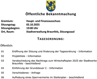 Verabschiedung des Nachtrags zum Wirtschaftsplan 2025 der Stadtwerke Braunfels - beschließend