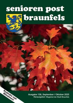 Die Seniorenpost erscheint zweimonatlich, ist kostenlos und wird durch den Magistrat der Stadt Braunfels herausgegeben. Sie erfreut sich großer Beliebtheit.