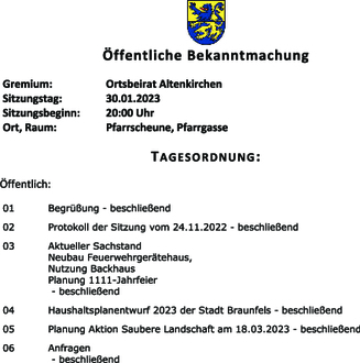 | Gremium: | Ortsbeirat Altenkirchen |