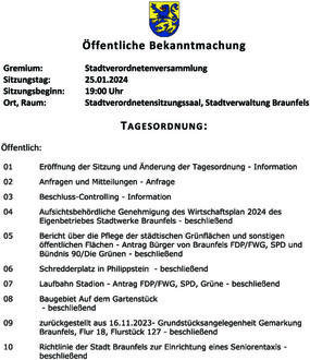 | Ort, Raum: | Stadtverordnetensitzungssaal, Stadtverwaltung Braunfels |