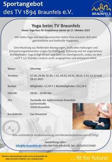 YOGA BEIM TV 1894 BRAUNFELS STARTET AB OKTOBER
