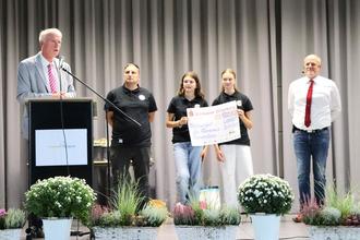 „Die Frage 'Wer spielt besser Fußball - Jungen oder Mädchen?' löste erst heute bei einer anderen Veranstaltung, an der ich teilgenommen habe, eine emotionale Debatte zwischen Schülerinnen und Schülern aus", stieg Kreis-Sozialdezernent Stephan Aurand in seine Laudatio ein. Der zweite Preisträger des Abends zeige, dass die Nachfrage bei Mädchen definitiv nicht geringer sei, als bei Jungen, so Aurand weiter. Der SSV Alemannia Sechshelden hat im Jahr 2023 eine eigene Mädchenabteilung gegründet, einen Tag des Mädchenfußballs veranstaltet und an Grundschulen und Kitas sowie über Social Media für den Mädchenfußball geworben. So konnte der Verein zunächst zwei und mittlerweile sogar fünf Mädchenmannschaften aufstellen. David Gubsch, Leiter der Mädchenabteilung, bedankte sich für die „Bestätigung für 15 Monate Arbeit und Einsatz in diesem Projekt." Der Mädchenfußball habe den Verein neu belebt, erzählte er. „Von 200 sind wir mittlerweile auf 400 Vereinsmitglieder gewachsen. Natürlich wäre es schön, wenn die Mädchen auch weiterspielen, aber in erster Linie soll der Sport ein Ort der Begegnung und des Teamgeistes sein", so Gubsch.