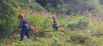 Die Bekämpfung des nach der Verlegung einer neuen Erdgasleitung durch die Eon aufkommenden invasiven Neophyten nimmt seither jedes Jahr viel Zeit und Arbeit in Anspruch. Immerhin ist es der AGNU gelungen zumindest den Weipersgrund selbst seit vielen Jahren praktisch freizuhalten, am Steinerbach konnte das nur gelingen bis in die Sumpfwiesen unterhalb der Fischteiche. In einem letzten Einsatz vor der Samenausschüttung haben Thomas Lutz, Christian Lotz und Joachim Bernecke mit Freischneidern den grossen Bestand abgemulcht. Das Springkraut vermehrt sich ausschließlich über seine massenhafte Aussamung im Sommer. Vorher muss es also entfernt oder gemulcht werden. Die Samen sind viele Jahre widerstandsfähig und werden durch das Gewässersystem und Wildtiere stetig verteilt. Dieses Jahr war witterungsbedingt ein ideales für das Springkraut. Zukünftig, so erklärt die AGNU, werde sie sich in ihrer Arbeit auf den unteren Teil des Steinerbaches und den Weipersgrund konzentrieren müssen, für mehr reichen ihre Möglichkeiten nicht mehr. Im Grunde leisten nur noch 4 Mitstreiter die Arbeit.