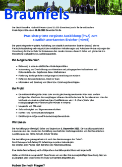 Stellenausschreibungen Praxisintegrierte vergütete Ausbildung (PivA) zum staatlich anerkannten Erzieher (m/w/d)