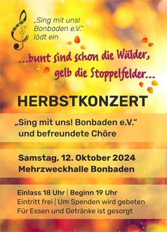 Der Chor „Sing mit uns! Bonbaden e.V.“ gestaltet dieses Jahr im Oktober sein erstes Herbstkonzert mit vielen bekannten Chören aus der Umgebung.