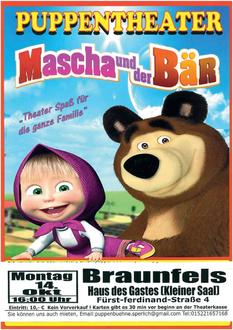 Die Puppenbühne Sperlich präsentiert das Puppentheaterstück „Mascha und der Bär“ in einer liebevollen Inszenierung.