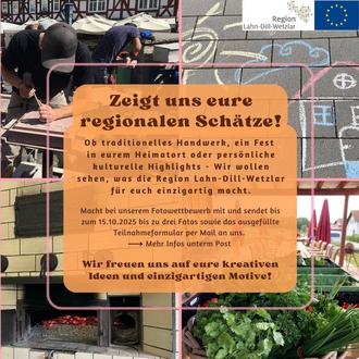 unter dem Motto „Regionale Schätze“ laden wir euch herzlich ein, unsere Heimat aus eurer Perspektive zu zeigen. Gestaltet mit euren Bildern den Fotokalender 2026 und setzt eure persönlichen Höhepunkte der Region Lahn-Dill-Wetzlar in Szene.