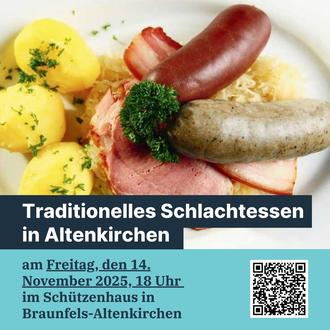 zum traditionellen Schlachtessen lädt Sie der CDU-Stadtverband Braunfels herzlich für Freitag, den 14. November 2025 ab 18 Uhr ins Schützenhaus in Braunfels-Altenkirchen ein.