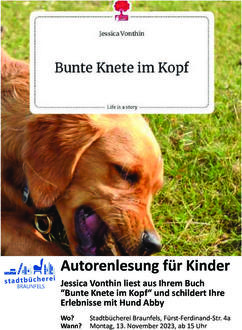 Habt ihr Lust auf eine spannende und lustige Lesung mit einer ganz besonderen Erzählerin? Dann seid ihr herzlich eingeladen zu unserem Lesenachmittag am 13. November ab 15 Uhr in der Stadtbücherei Braunfels. Dort wird die in Solms wohnende Autorin Jessica Vonthin aus ihrem Buch “Bunte Knete im Kopf” vorlesen und von einer Golden Retriever Hündin namens Abby erzählen.