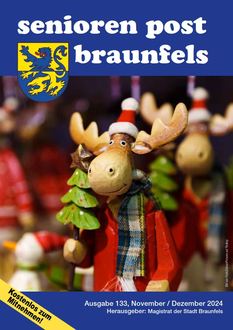 Die Seniorenpost erscheint zweimonatlich, ist kostenlos und wird durch den Magistrat der Stadt Braunfels herausgegeben. Sie erfreut sich großer Beliebtheit.