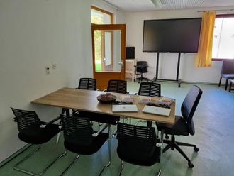 Ein weiteres Herzstück des Projekts ist der neu gestaltete Multifunktionsraum. Dieser wurde, dank der ausdrücklichen Freigabe durch die Kirchengemeinde zur Mitnutzung, modern möbliert und multimedial auf den neuesten Stand gebracht. Die technische Ausstattung, bestehend aus einem Mediaboard, Laptops und iPads, wurde durch Fördermittel der LEADER Region Lahn-Dill-Wetzlar finanziert. Der hochwertige Konferenztisch samt Bestuhlung stammt von der Firma Knorz aus Wetzlar und ist ebenfalls Bestandteil der LEADER-Förderung.