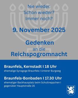 Die Gedenkveranstaltungen zur Reichspogromnacht finden jährlich am 9. November in Braunfels und Bonbaden statt.