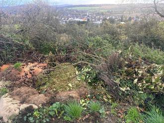 Am Hochbehälter in Altenkirchen wurden in den vergangenen Wochen unerlaubterweise regelmäßig große Mengen an Grünschnitt und Gartenabfällen abgeladen. (Foto: Stadtwerke Braunfels)
