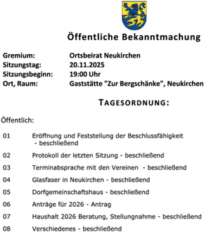 | Gremium: | Ortsbeirat Neukirchen |