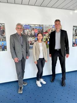 : Im Haus der Wirtschaft Mittelhessen wurden Themen rund um die wirtschaftliche Lage der Unternehmen im Lahn-Dill-Kreis diskutiert. Von links: Prof. Dr. Harald Danne, Kim Marie Stahl, Wirtschaftsförderin des Lahn-Dill-Kreises, und Sascha Drechsel. (Foto: Simone Schupp, VhU)