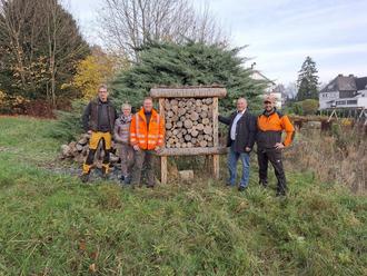 Ergänzend zur Pflanzaktion spendete die Jagdgenossenschaft ein Insektenhotel, das vom Freundeskreis Herrengarten mit Unterstützung der Stadt Braunfels um eine Reptilienburg erweitert wurde. Diese naturnahen Elemente schaffen zusätzliche Rückzugsräume für Tiere und fördern die ökologische Vielfalt im Kurpark.