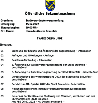 | 06 | Verabschiedung des Wirtschaftsplans 2023 der Stadtwerke Braunfels -beschließend |