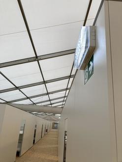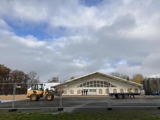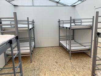 Seit dem 31. Oktober haben verschiedene Gewerke das Zelt errichtet, Kabinen eingebaut, Doppelstockbetten bereitgestellt, Strom verlegt, Waschmaschinen-, Dusch- und Toilettencontainer installiert und vieles mehr. 36 Duschen stehen zur Verfügung, 38 Toiletten, in den Zimmern sind USB-Ladebuchsen angebracht, im Eingangsbereich Steckdosen. Auch WLAN wird aktuell noch installiert. "Wir haben die gesamte Unterkunft innerhalb von einem Monat fertig gestellt", erklärt Nicolas Hartmann - ein Kraftakt für alle Beteiligten.