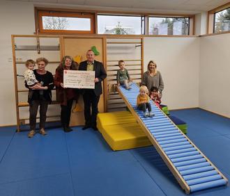 Eine Rutsche mit Rollen: Diese Attraktion steht nun in der Kita „Schlossmäuse“ für die Kinder bereit. Gespendet wurde dieses neue Spielgerät von der ehrenamtlich tätigen Frauengruppe „Charity im Frauenzimmer“ aus Weilmünster mit einer Summe in Höhe von 800 Euro. Bei der Rollrutschbahn handelt es sich um eine Rutsche, die aus vielen kleinen Rollen besteht. Und darauf kann nicht nur gerutscht werden: Die Kleinen können auf spielerische Weise vorwärts, rückwärts sowie in Bauch- und Rückenlage verschiedene Bewegungsabläufe entdecken und ausprobieren, indem die Rutsche auf den Boden gelegt wird. In der Kita Schlossmäuse werden aktuell insgesamt 35 Kinder betreut und zwölf Mitarbeitende beschäftigt.