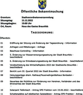 | 04 | 5. Änderung zur Wasserversorgungssatzung der Stadt Braunfels – beschließend |