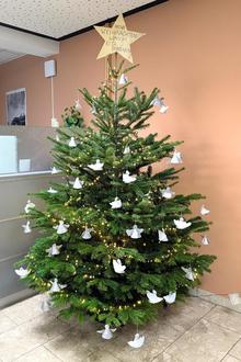 Die Kinder der Kita Bonbaden schmückten Anfang Dezember den Weihnachtsbaum im Foyer des Braunfelser Rathauses mit selbstgebastelten Engeln. (Foto: Stadt Braunfels)