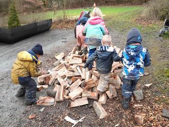 Mit „Feuereifer“ unterstützten die Kitakinder beim Einlagern der Holzscheiten. (Foto: Stadt Braunfels)