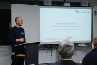 Noah Rothgerber erklärte, wie die Zusammenarbeit zwischen Feuerwehr und Rettungsdienst möglichst effizient gestaltet werden kann. (Foto: Lahn-Dill-Kreis)