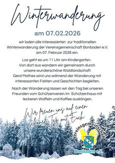 Wir laden alle Interessierten zu unserer traditionellen Winterwanderung am 07.02.2026 ein.