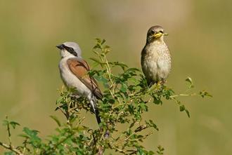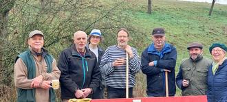 Auf dem Foto die „Einsatzgruppe“ der AGNU in der Kirschbach. Plus das im kleinen Tälchen ansässige Neuntöterpärchen. Auf dem weiteren Foto das Männchen mit 2 Jungen. Fotos vom Vorjahr, Neuntöter sind Zugvögel und noch nicht wieder zurück aus ihren Winterquartieren in Afrika zurück. Fotos Wolfgang Mehl