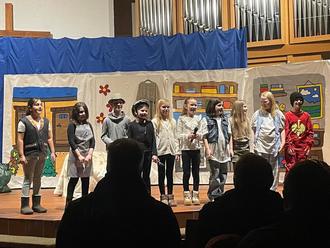 Die Kinder der Musical-AG verloren bis zuletzt nicht die Lust am Üben. Sie glänzten durch ihr lebendiges Schauspiel und ihren einfühlsamen Gesang. Jedes Kind überzeugte durch souveränen Solovortrag einzelner Lieder oder Liedpassagen, aber auch das gemeinsame Singen aller Kinder riss das Publikum mit. Suri Swoboda konnte ihre gut eingeübte Rolle leider wegen Krankheit nicht selbst präsentieren. Ihren Part übernahm kurzfristig zusätzlich zur eigenen Rolle Ecrin Aslan. Weitere Darstellende waren Matilda Schlereth, Sara-Leia Ekinci, Finja Sofie Schüttler, Amelie Caspari, Liana Wagner, Saron Thor Leonard Joyner, Emma Mara Zenkert, Lina Bommersheim und Finninee Malea Schelberg.
