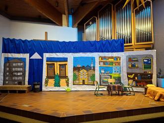 Als Souffleuse und beim Umbau der Requisiten unterstützte Anika Emmel-Bommersheim, Schulelternbeirätin und Linas Mutter, tatkräftig. Stephan Burger entwarf wunderschöne Kulissenbilder, die der komplexen Handlung zusätzliche Klarheit verliehen. Für die Liedbegleitungen bildeten Dorothea Hanstein (Klavier) und Stephan Pussel (Cajon usw.) ein gutes Team. Pfarrer Sven Seuthe stellte freundlicherweise die Kirche für Proben und Aufführungen zur Verfügung. Linas Schwester Ida Bommerstheim machte allen Mitwirkenden eine Freude, weil sie eine der Vorführungen als private Erinnerung filmte.