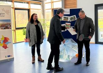 Das für 2022 der LEADER Region Lahn-Dill- Wetzlar zur Verfügung stehende Budget, konnte mit 392.840 Euro voll ausgeschöpft werden. Regionalmanagerin Mercedes Bindhardt schuf einen Raum mit passendem Ambiente für die Präsentaionen sowie Zeit für anschließenden Austausch im hellen Dorfgemeinschaftshaus.