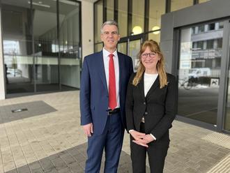 Erster Kreisbeigeordneter Frank Inderthal begrüßt Anne Peter-Lauff offiziell im neuen Amt als Leiterin der Abteilung für den ländlichen Raum. Zuständig ist Peter-Lauff damit für den Lahn-Dill-Kreis und den Landkreis Gießen. Der Sitz Ihrer Abteilung ist im Kreishaus in Wetzlar. (Foto: Lahn-Dill-Kreis)