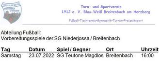 Fußball SG Niederjossa / Breitenbach - Vorbereitungsspiel Teutone