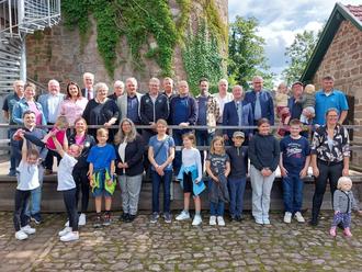 Kürzlich versammelten sich auf dem Hof des Schlosses Neuenstein die Projektträgerinnen und Projektträger gemeinsam mit dem Verein zur Regionalentwicklung im Knüllgebiet e.V. und dem Regionalmanagement der LEADER-Region Knüll, um den entsprechenden Zuwendungsbescheid von Landrat Torsten Warnecke (Hersfeld-Rotenburg) zu erhalten, der ihn dem Vorsitzenden des Vereins zur Regionalentwicklung im Knüllgebiet Walter Glänzer und Regionalmanager Artur Dick übergab.