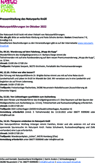 Detailliertere Beschreibungen zu den Veranstaltungen gibt es auf der Internetseite www.naturpark-knuell.de