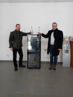 Dirk Krumpholz, einer der Geschäftsführer von 57 Wasser, hat Bürgermeister Lay einen neuen Getränkekühlschrank für das Funktionsgebäude der Schauhöhle Herbstlabyrinth Breitscheid übergeben. Besucher und Wanderer können fortan während den Öffnungszeiten gekühlte Getränke und natürlich 57 Wasser vor Ort kaufen. Der Getränkehersteller 57 Wasser - Premiumpartner der Schauhöhle Herbstlabyrinth Breitscheid - spendet einen Großteil seiner Gewinne für wohltätige Zwecke. Über 156.000,00 EUR konnten so schon zur Verfügung gestellt werden. Nähere Infos finden Sie im Internet unter 57wasser.de.