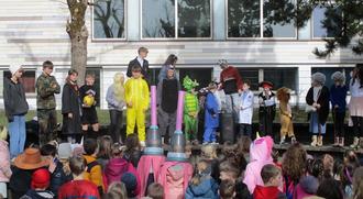Der Höhepunkt der Veranstaltung war die Prämierung der besten Kostüme der Schüler und Lehrer. Zuvor wurde durch klasseninterne Wahlen eine Vorauswahl getroffen. Als Jury fungierten die Zuschauer, die durch Jubeln und Applaus die Entscheidung trafen. Bei den Schülern gewann Eli Deisel aus der Klasse 3 mit seinem Arzt-Kostüm knapp vor Finn Bechtum aus der 2a. Im Lehrerwettbewerb landeten Jennifer Schneider und Charlotte Meuser, die als Bienen verkleidet waren, auf dem ersten Platz, gefolgt von Tobias Adam im Schottenrock. Zur Belohnung gab es für die kostümierten Sieger Urkunden und tütenweise Gummibärchen.