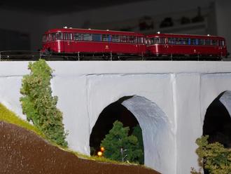 Drei vorübergehende Sonderausstellungen ergänzen diese Präsentation. Karl-Heinz Schwarze hat die ehemalige Verladung des Basalt-Abbaus am Steinringsberg im Maßstab 1:87 nachgebaut. Im gleichen Maßstab sind die LKW von Klaus Bott. Handelsübliche Modelle hat er umlackiert und neu beschriftet, nach den großen Vorbildern heimischer Speditionen und Bauunternehmen. Passend dazu präsentiert Finn Luca Klein sein Modell des Flammersbacher Eisenbahnviadukts, das er detailliert nachgebaut hat.