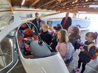 Am Ende der Führung stand die Besichtigung eines Hangars auf dem Programm. Die Kinder konnten sehen, welche unterschiedlichen Flugzeuge dort untergebracht sind und durften auch mal Pilot spielen und in ein Flugzeug klettern.