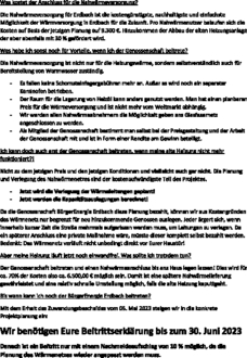 | - | Wir werden allen Nahwärmeabnehmern die Möglichkeit geben ans Glasfasernetz angeschlossen zu werden. |