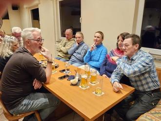 Sichtlich wohl fühlten sich die „Sangesfreunde“ im Sportheim des FC SW Erdbach 08. Die Fussballfreunde hatten sich bereit erklärt, die Sänger mit ihren Familien und Gästen nach ihrem Winterspaziergang zu bewirten und boten auch einen Fahrdienst an. Diese Wanderung hat einen festen Platz im Terminkalender der Sangesfreunde. Start war bei prächtigem Winterwetter am DGH in Erdbach und führte zum Sportheim der Fußballer. Der Vorsitzende der „Sangesfreunde“ Wilhelm Triesch bedankte sich ganz herzlich bei den Fußballfreunden und ergänzte: So funktioniert Dorfgemeinschaft. Die Sänger schlossen sich dem Dankeschön mit einigen Liedvorträgen gerne an und eröffneten den gemütlichen Teil. Nach dem Abendessen gab es reichlich Zeit zum Austausch. So wurden auch wieder verschiedene Anektoden aus der „Kiste“ geholt. Es wohr schie!
