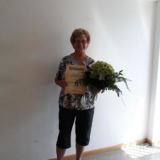 Für diese tolle Leistung wurde Sie von ihrer Übungsleiterin Angelika Walter mit einer Urkunde und einem Blumenstrauß geehrt.