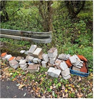 Vermutlich in der Zeit vom 24.09.2025 bis 25.09.2025 wurde unterhalb vom Sportplatz Rabenscheid auf der „alten Langenaubacher Str.“ illegal Müll entsorgt. Es handelt sich um graue Fliesen, teils noch verpackt (siehe Foto).