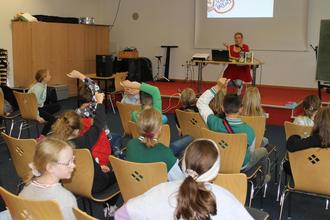 Dies war nur eine der vielen Antworten auf Fragen rund ums Schreiben und „Bücher machen“, die Kinder der 3. und 4. Klasse der Kinderbuchautorin Silke Schellhammer stellten.